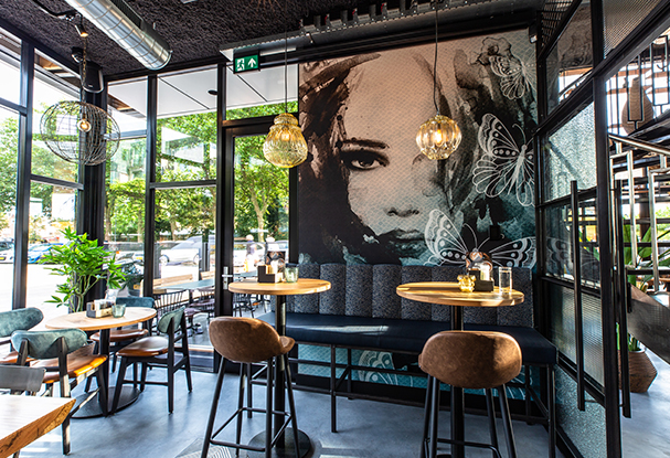 Het paviljoen is ruim opgezet met zo’n 120 zitplaatsen in het paviljoen en zo’n 250 zitplaatsen op het terras. De inrichting straalt een warme huiselijkheid uit, compleet met rijk gevulde boekenkast en zeer uitgebreide wijnrekken met de mooiste internationale wijnen. Dit alles doorspekt met een heerlijk, ongecompliceerd strandsfeertje. Zo’n sfeer die je maar zelden treft en waar iedereen zich thuis voelt. Dat moet ook op het strand, waar jong en oud samen komen om te genieten. Vanaf het eerste kopje koffie tot en met het allerlaatste glaasje wijn na een lekker diner van onze internationale kaart, je kunt hier gerust de hele dag vertoeven.